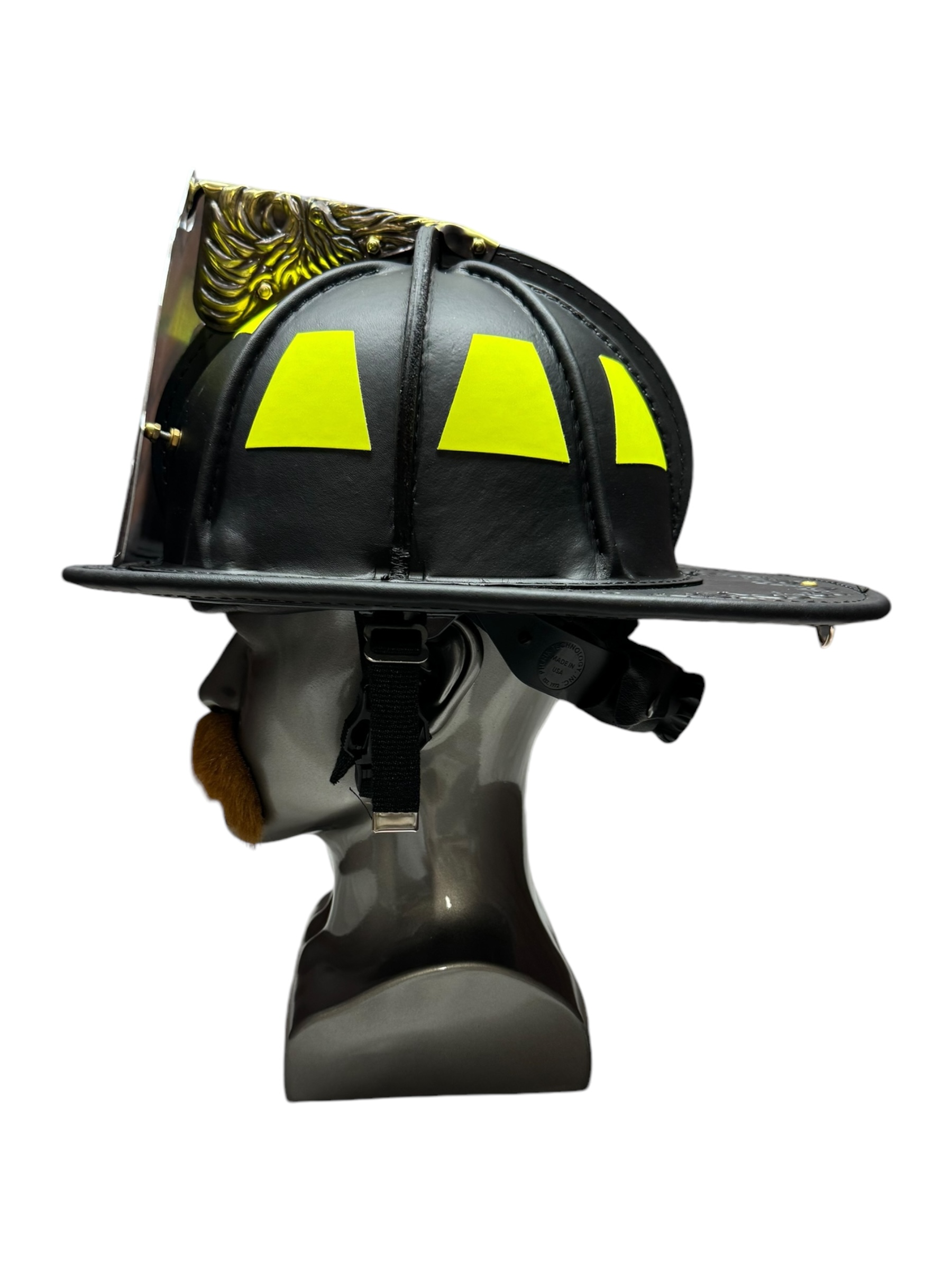 The TL-2 Traditional Flat Black Leather Helmet is the lightest NFPA complaint authentic leather helmet on the market. Worn by firefighters worldwide, the TL-2 combines tradition and modern safety in a handcrafted masterpiece. Flat Black Leather Helmet Compliant to current OSHA and NFPA 1971 standards.